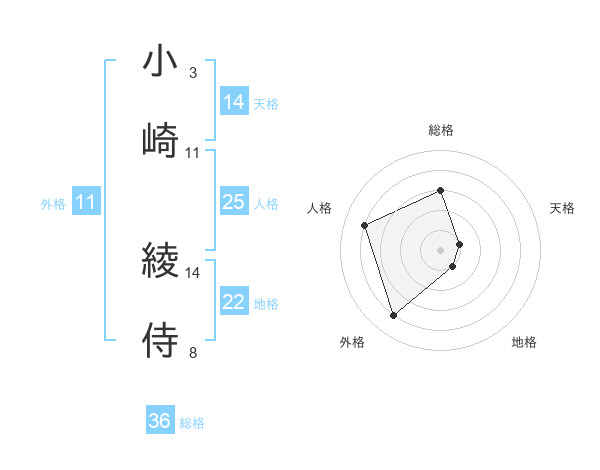 小崎 綾侍さんの天格は14画の1点!