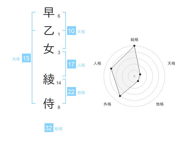 早乙女 綾侍さんを姓名の画数から五運を鑑定