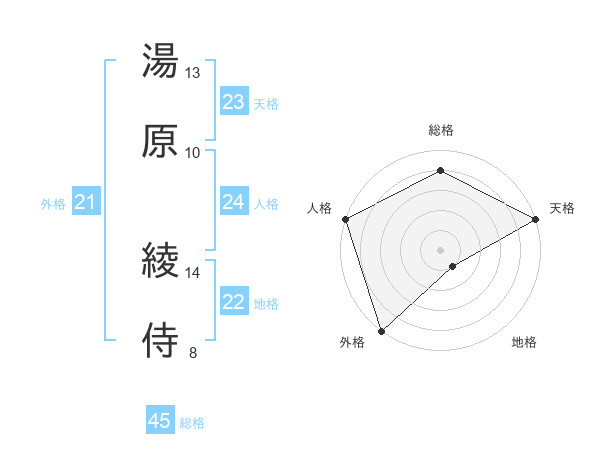 湯原 綾侍さんの総格は45画の4点!