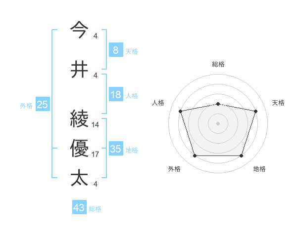 今井 綾優太さんを姓名の画数から五運を鑑定