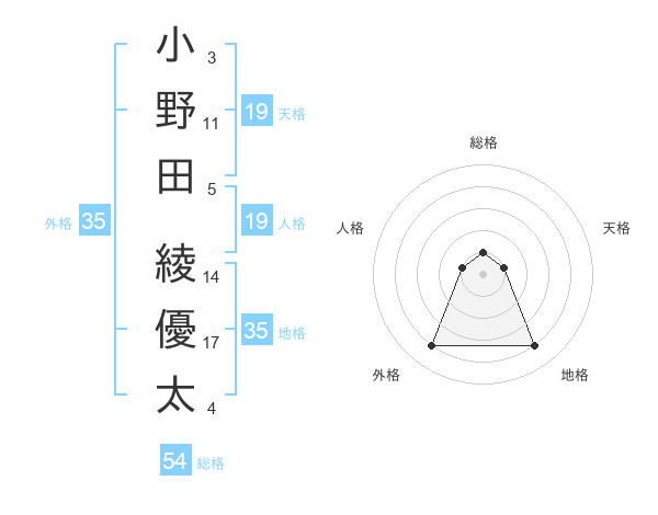 小野田 綾優太さんを姓名の画数から五運を鑑定