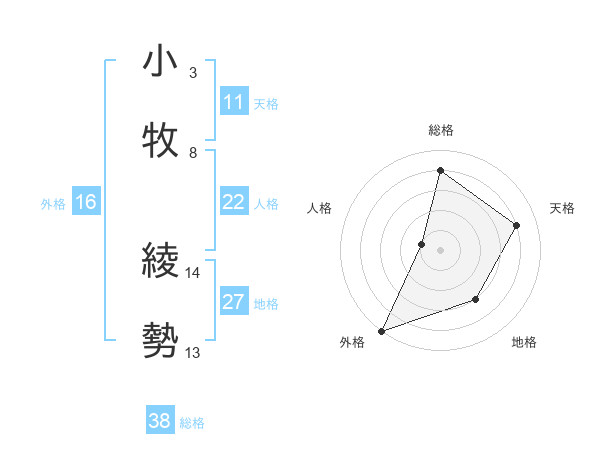 小牧 綾勢さんの総格は38画の4点!