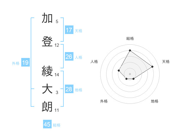 加登 綾大朗さんを姓名の画数から五運を鑑定