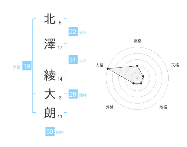 北澤 綾大朗さんを姓名の画数から五運を鑑定