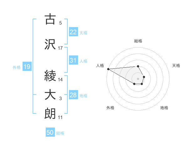 古沢 綾大朗さんを姓名の画数から五運を鑑定