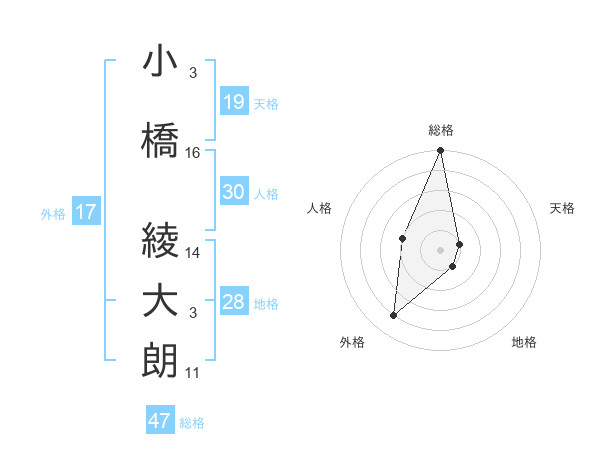 小橋 綾大朗さんの総格は47画の5点!