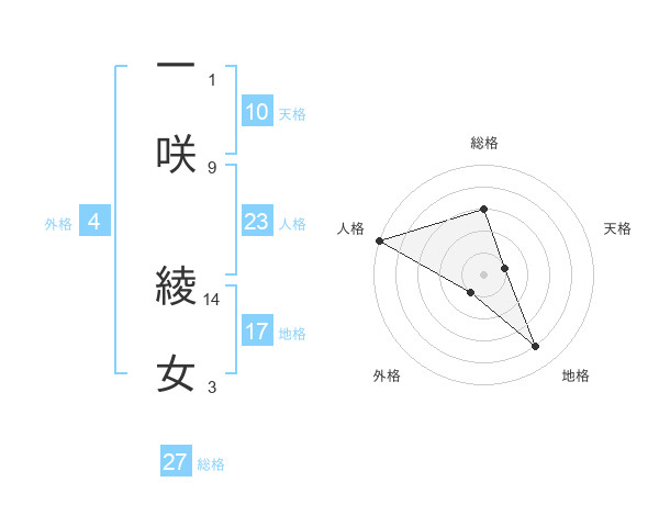 一咲 綾女さんを姓名の画数から五運を鑑定