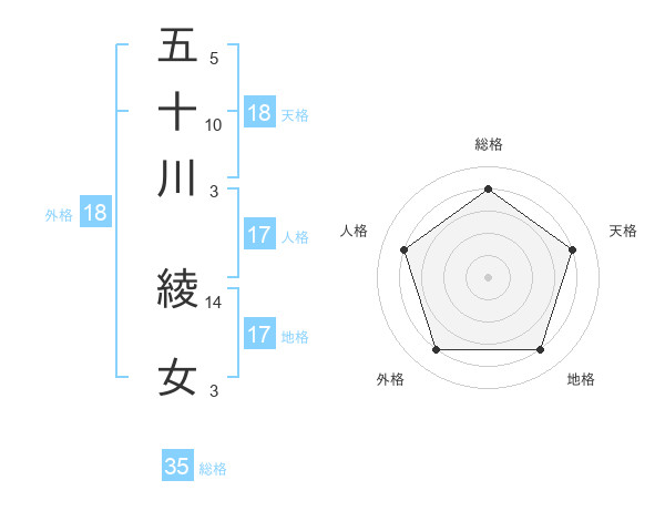 五十川 綾女さんを姓名の画数から五運を鑑定