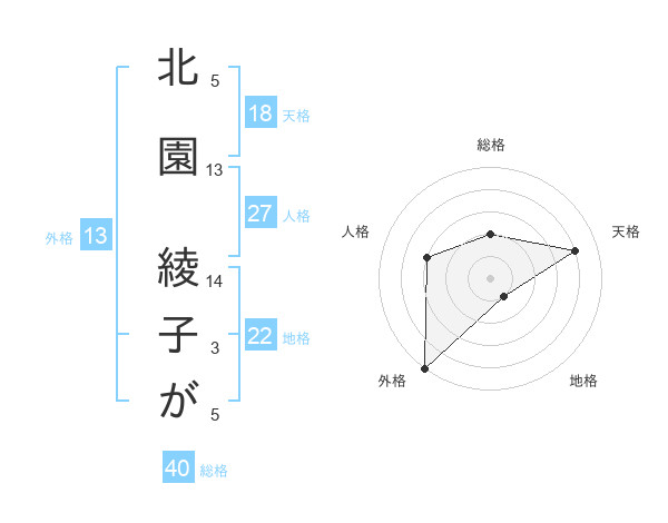 北園 綾子がさんを姓名の画数から五運を鑑定