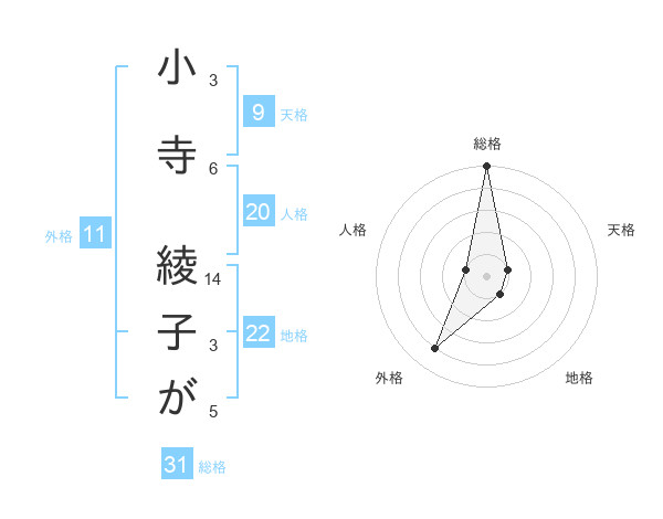 小寺 綾子がさんを姓名の画数から五運を鑑定