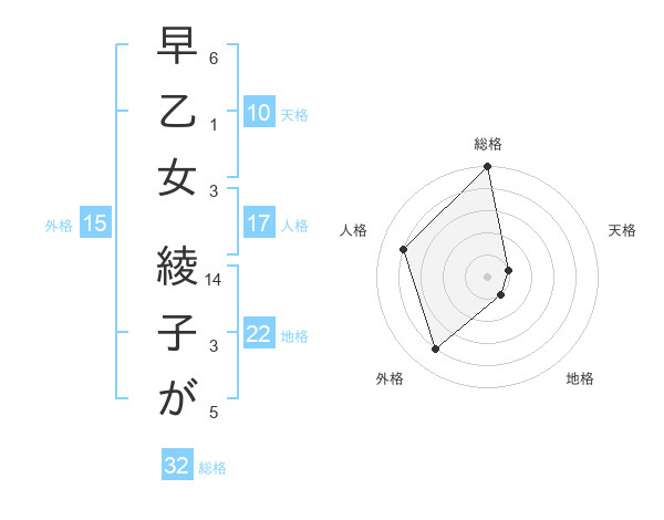 早乙女 綾子がさんを姓名の画数から五運を鑑定