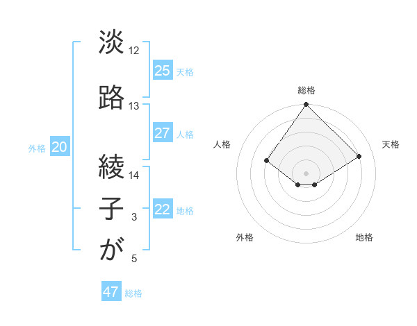 淡路 綾子がさんを姓名の画数から五運を鑑定