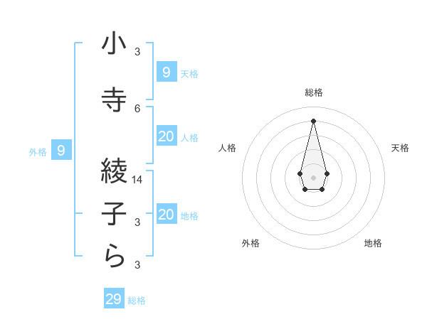 小寺 綾子らさんを姓名の画数から五運を鑑定