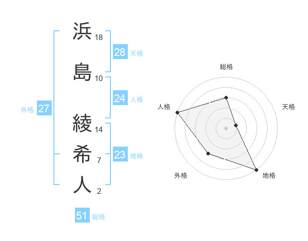 浜島 綾希人さんを姓名の画数から五運を鑑定