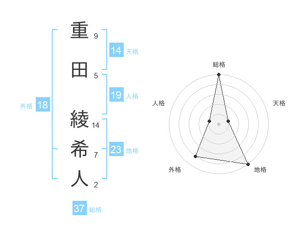 重田 綾希人さんを姓名の画数から五運を鑑定