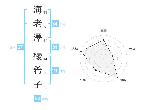 海老澤 綾希子さんを姓名の画数から五運を鑑定