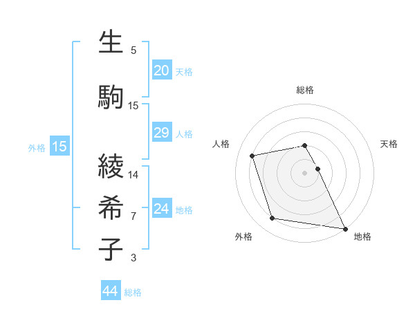 生駒 綾希子さんの総格は44画の2点!