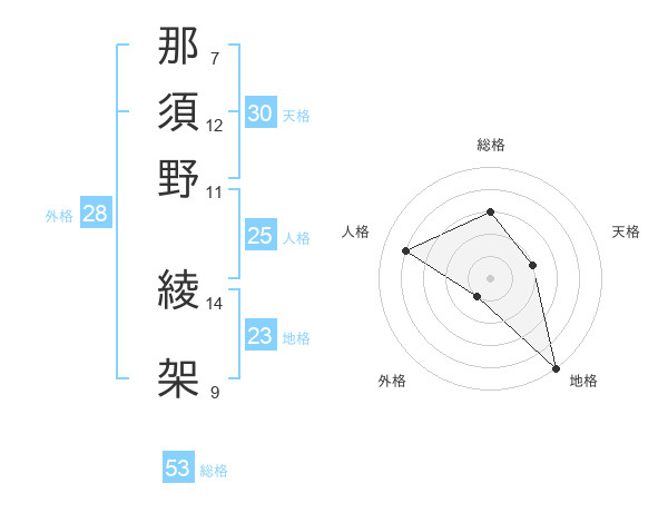 那須野 綾架さんを姓名の画数から五運を鑑定