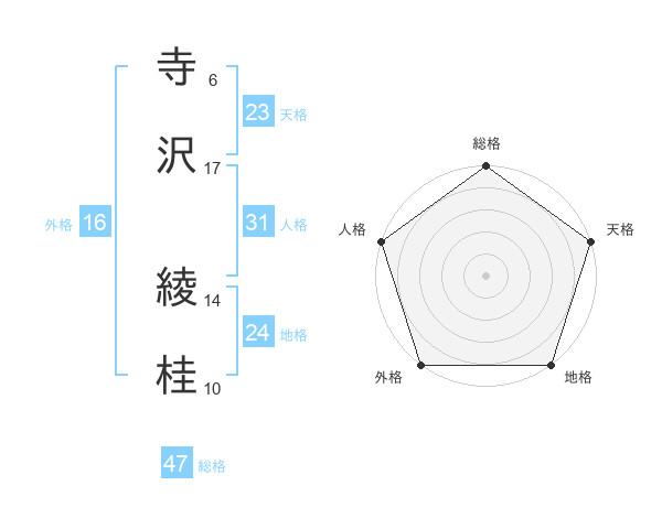 寺沢 綾桂さんを姓名の画数から五運を鑑定