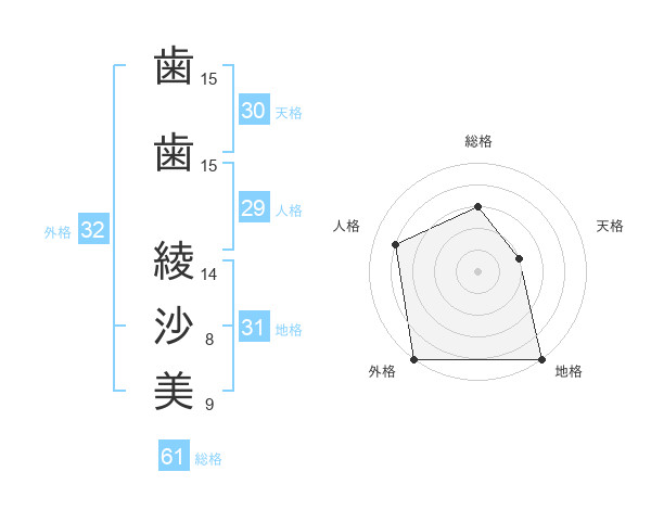 歯歯 綾沙美さんを姓名の画数から五運を鑑定