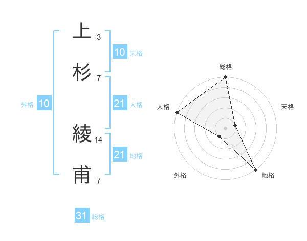 上杉 綾甫さんを姓名の画数から五運を鑑定