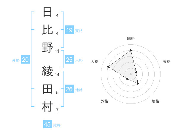 日比野 綾田村さんを姓名の画数から五運を鑑定