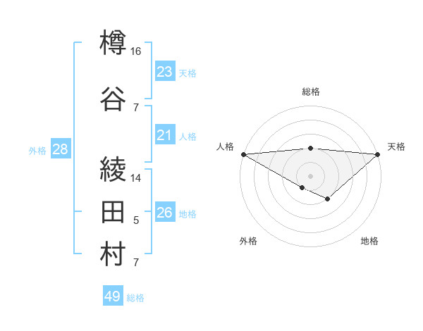 樽谷 綾田村さんの天格は23画の5点!