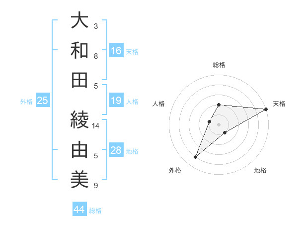 大和田 綾由美さんを姓名の画数から五運を鑑定