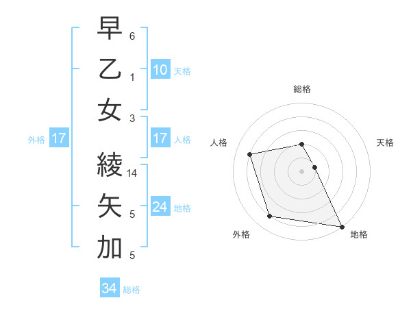 早乙女 綾矢加さんを姓名の画数から五運を鑑定