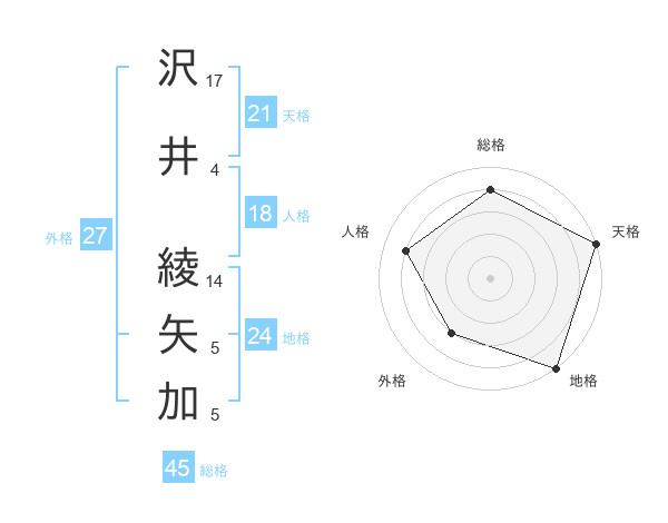 沢井 綾矢加さんを姓名の画数から五運を鑑定