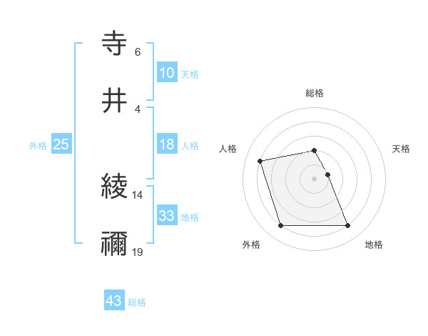 寺井 綾禰さんの外格は25画の4点!