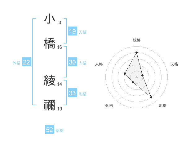 小橋 綾禰さんを姓名の画数から五運を鑑定
