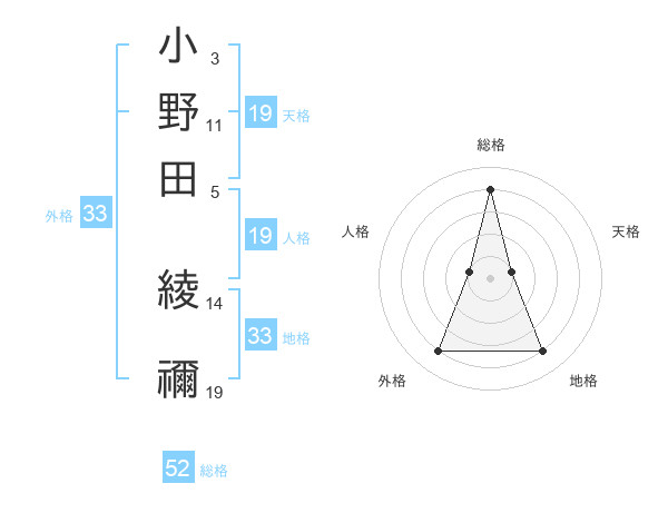 小野田 綾禰さんの総格は52画の4点!