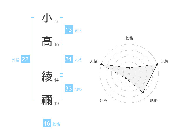 小高 綾禰さんの総格は46画の1点!