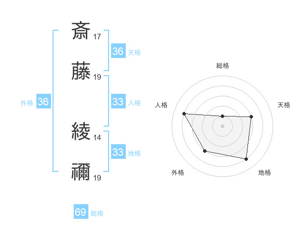 斎藤 綾禰さんを姓名の画数から五運を鑑定