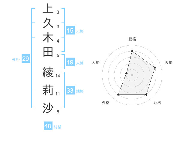 上久木田 綾莉沙さんの天格は15画の4点!
