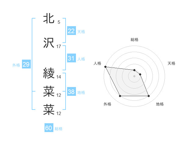 北沢 綾菜菜さんを姓名の画数から五運を鑑定