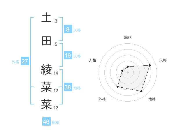 土田 綾菜菜さんを姓名の画数から五運を鑑定
