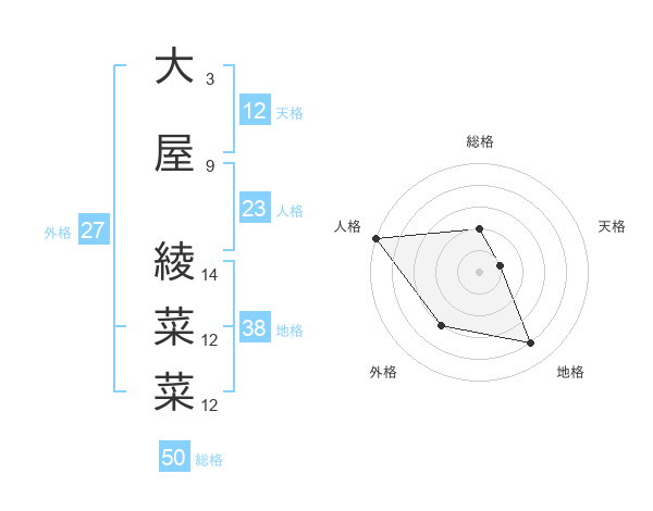 大屋 綾菜菜さんを姓名の画数から五運を鑑定