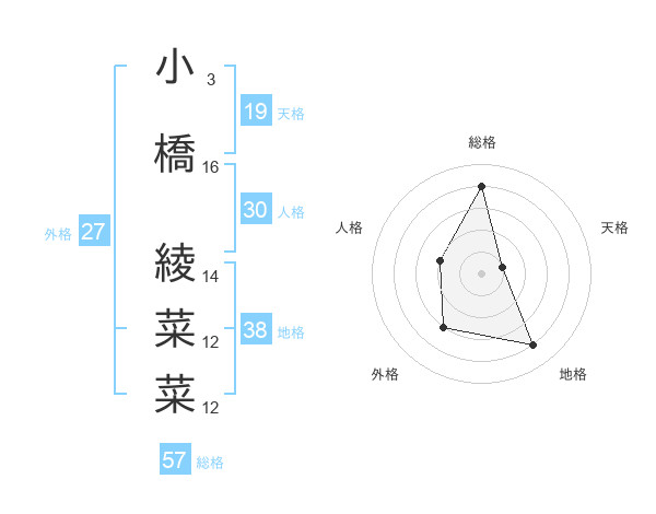 小橋 綾菜菜さんの総格は57画の4点!