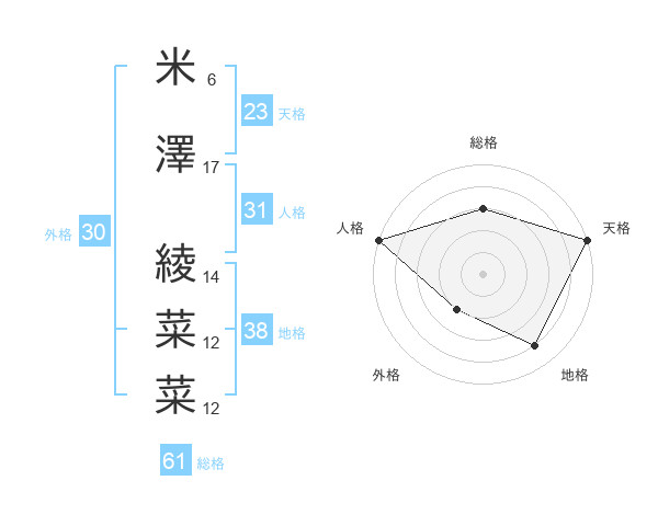 米澤 綾菜菜さんを姓名の画数から五運を鑑定