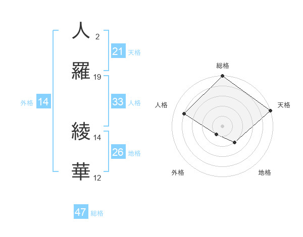 人羅 綾華さんの天格は21画の5点!