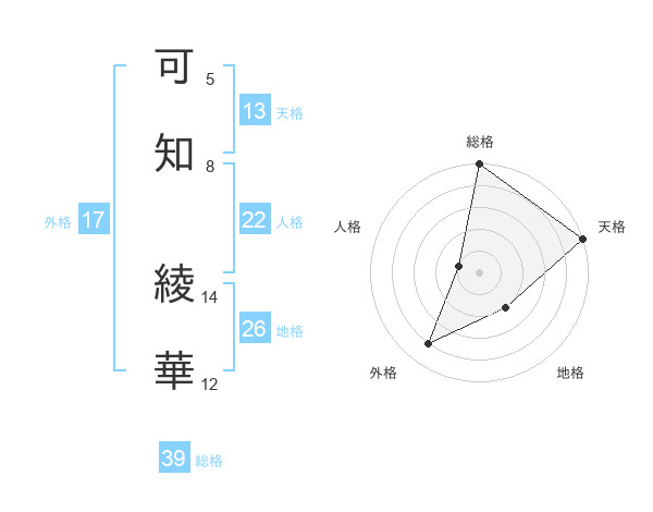 可知 綾華さんの天格は13画の5点!