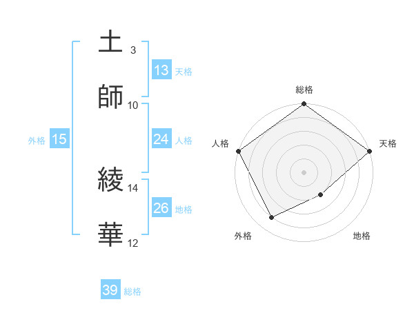 土師 綾華さんの総格は39画の5点!