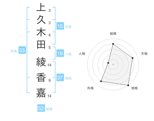 上久木田 綾香嘉さんを姓名の画数から五運を鑑定