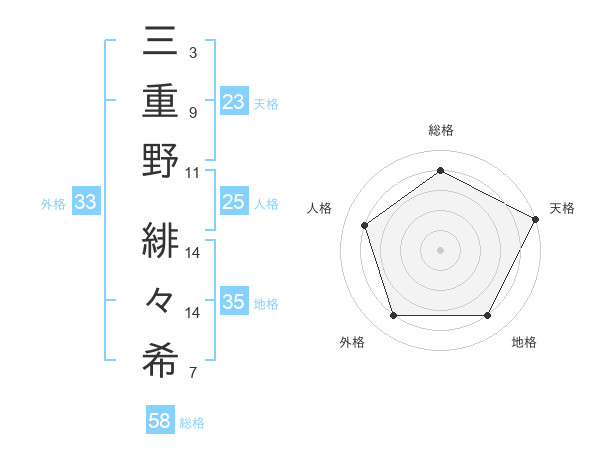 三重野 緋々希さんの総格は58画の4点!