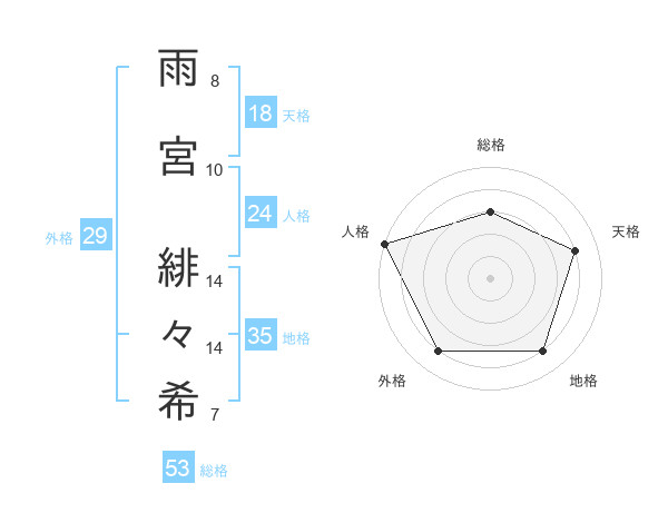 雨宮 緋々希さんを姓名の画数から五運を鑑定