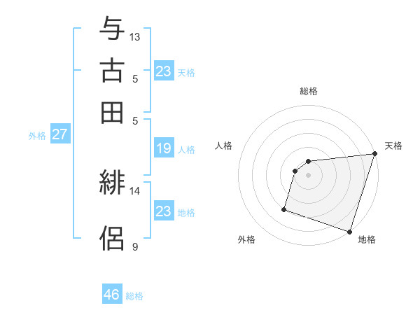 与古田 緋侶さんを姓名の画数から五運を鑑定