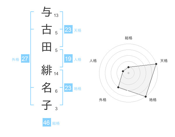 与古田 緋名子さんを姓名の画数から五運を鑑定
