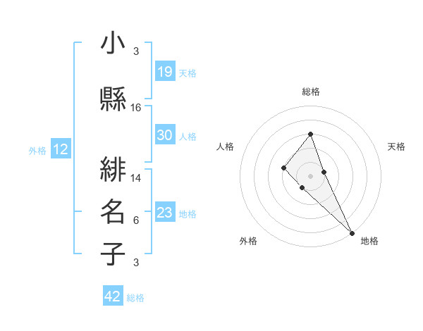 小縣 緋名子さんを姓名の画数から五運を鑑定